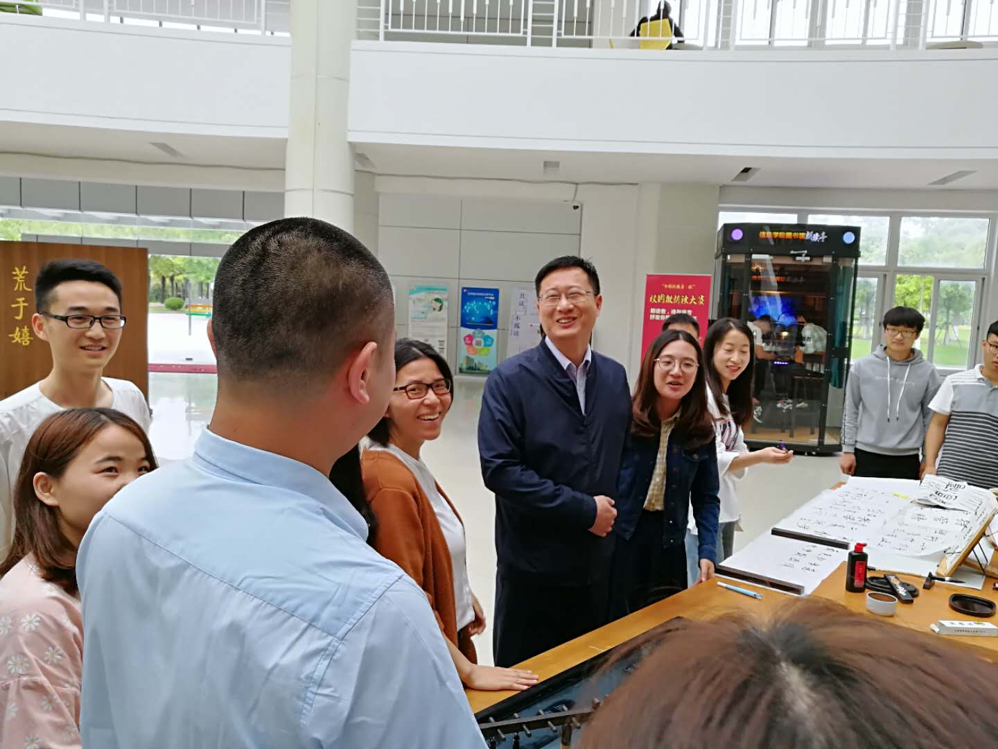 本届读书节为期七个月,共推出了10余项活动:如“书舒朗读亭·杯”校园微朗读大赛,书香申城“新时代 创新创业新征程”主题阅读征文, “超星杯”知识竞赛以及数字资源专题培训讲座等系列活动。5月7日开幕当天,在图书馆一楼大厅开展了数字资源现场推广、党建专题、考试辅导专题书展、书法体验、朗读亭体验等系列活动,吸引了众多师生的广泛参与。同学们纷纷表示,朗读亭带给了他们新奇有趣,寓教于乐的阅读体验;电子书法以创新形式让他们领略到了传统语言文字的魅力;图书馆提供的丰富数字资源与服务对平时的学习也很有帮助。学院副校长张涛一行亲临现场,对本次读书节策划的各项活动给予了充分肯定,并向图书馆师生提出了殷切的期望,希望大家把馆设品牌活动与团委、生活园区的相关活动有机结合,交互协调、跨界融合,打破图书馆的服务常规,吸引多方力量广泛参与,进一步提高阅读推广的有效性。活动前3天,超星学习通平台新增用户261人,135位读者通过朗读亭提交了录音作品共1387条。
