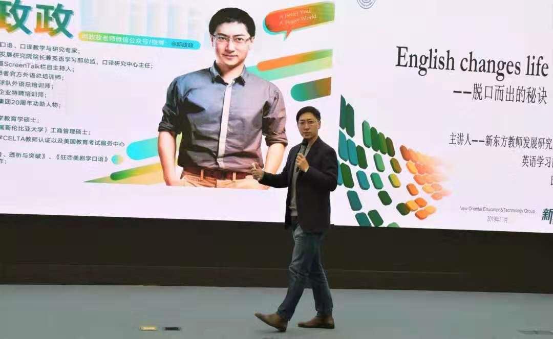 为进一步推动我校学生英文水平均衡发展,真正将英语学科素养理念落实到地,根据我校图书馆工作安排,结合一线教师与学生们的需求,新东方(上海)教师发展研究院院长,英语学习部总监,教学管理中心主任,口译研究中心主任,新东方集团20周年功勋人物邱政政于11月26日晚莅临我校C108报告厅,开设专题讲座《脱口而出讲英文》为我校学子奉上了一场精彩绝伦的演讲。