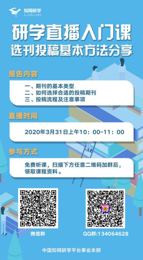 为了更好地帮助教师读者以及部分感兴趣的同学了解文献阅读、论文写作、选刊投稿和学术规范的要求,知网研学平台将于下周举办在线直播课程,直播课主题是:选刊投稿+文献综述,欢迎大家积极参与观看!