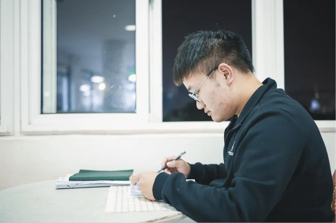 在观察中,小图注意到一个细节,洪祥的手机总被他开着静音,压在六级资料堆里,平时需要看时间就用到一只黑色圆形表,这样可以保证他在学习的时候不受电子产品的打扰。一个人自律起来有多可怕,come on,四六级,卷起来!