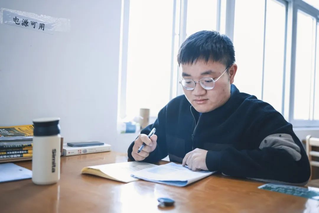 吃完饭,回到宿舍短暂休整,洪祥又来到了图书馆,利用半个小时午休放松下自己。“我喜欢趴着戴着耳机午睡半个小时,这样下午的学习效率会更高。”他说。