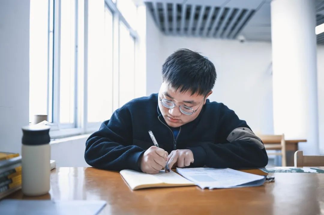 利用中午见缝插针的时间,小图了解到,进入到大学后,洪祥不仅喜欢借书,一个学期大约还要再购买十多本书来阅读,每本书他都要读上两到三遍。“第一遍略读,第二遍会在略读基础上再进一步精读,随手也会做些阅读笔记。”洪祥分享起他的阅读习惯,因为看书的时候总是情不自禁的在书上圈圈画画,所以他很喜欢自己买书来读,“我喜欢沉浸式阅读,电子书会让我时不时为一些社交软件的弹窗而分心。”他分享到。比起当今更为便携多元的电子化阅读,他似乎更享受这种传统、朴素的纸质阅读方式。