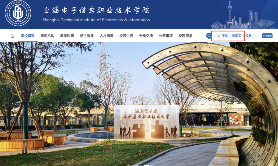 一、 首先进入上海电子信息职业技术学院主页,点击右上角登录框登录校园综合服务平台。
