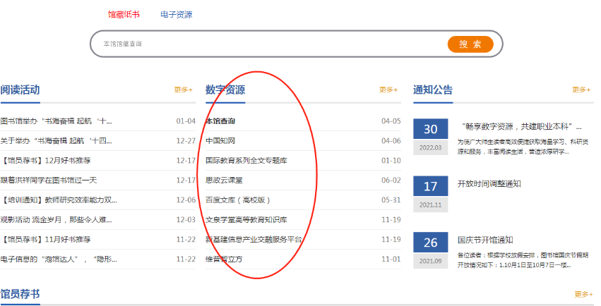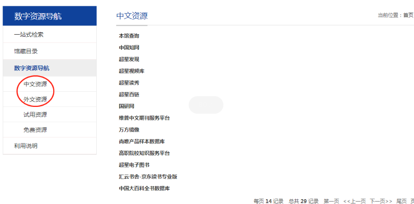 4. 可以选择从图书馆官网资源导航页面进入我馆采购的各电子资源平台主页,也可以自行百度搜索进入其主页。
