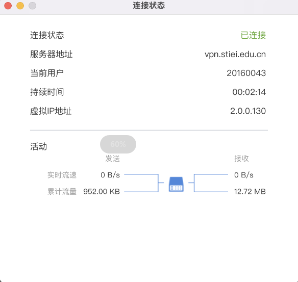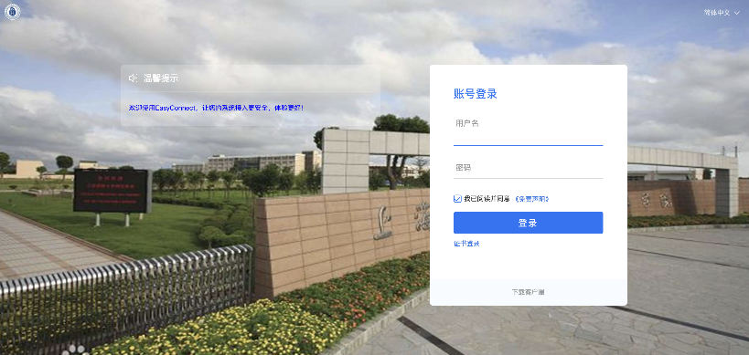 3. 如果遇到VPN无法登陆(版本过低),需重新安装VPN https://vpn.stiei.edu.cn,等待弹出证书登陆页并重新登陆。登录成功以后会如下图所示: