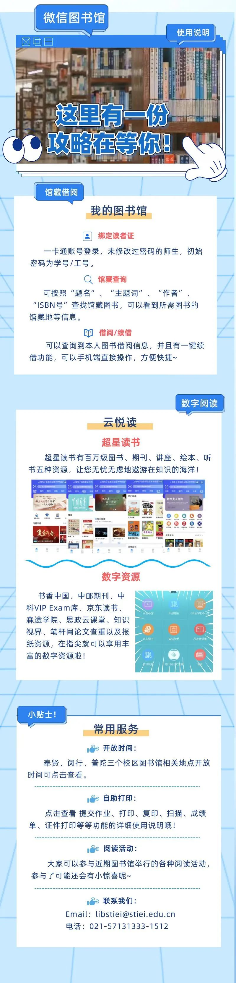 图书馆微信公众号是一个线上读者服务平台,除信息发布外,还提供馆藏查询、图书续借、数字阅读等功能,让您随时随地,享受图书馆的资源和服务。