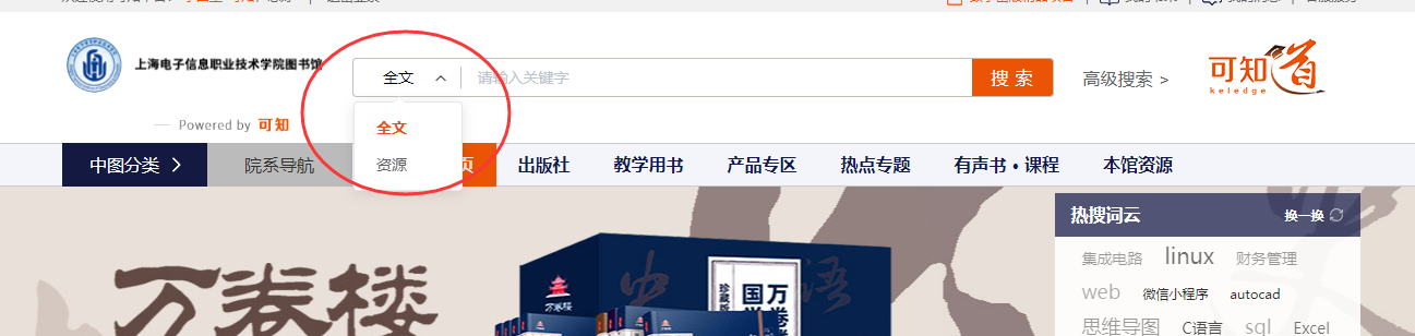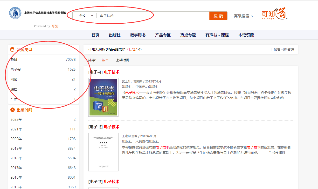 可根据院系专业分类或通过关键字、出版社、作者、ISBN进行资源检索和查找。