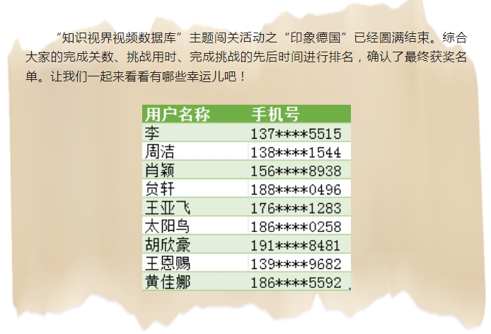 “知识视界视频数据库”主题闯关活动之“印象德国”获奖结果公布