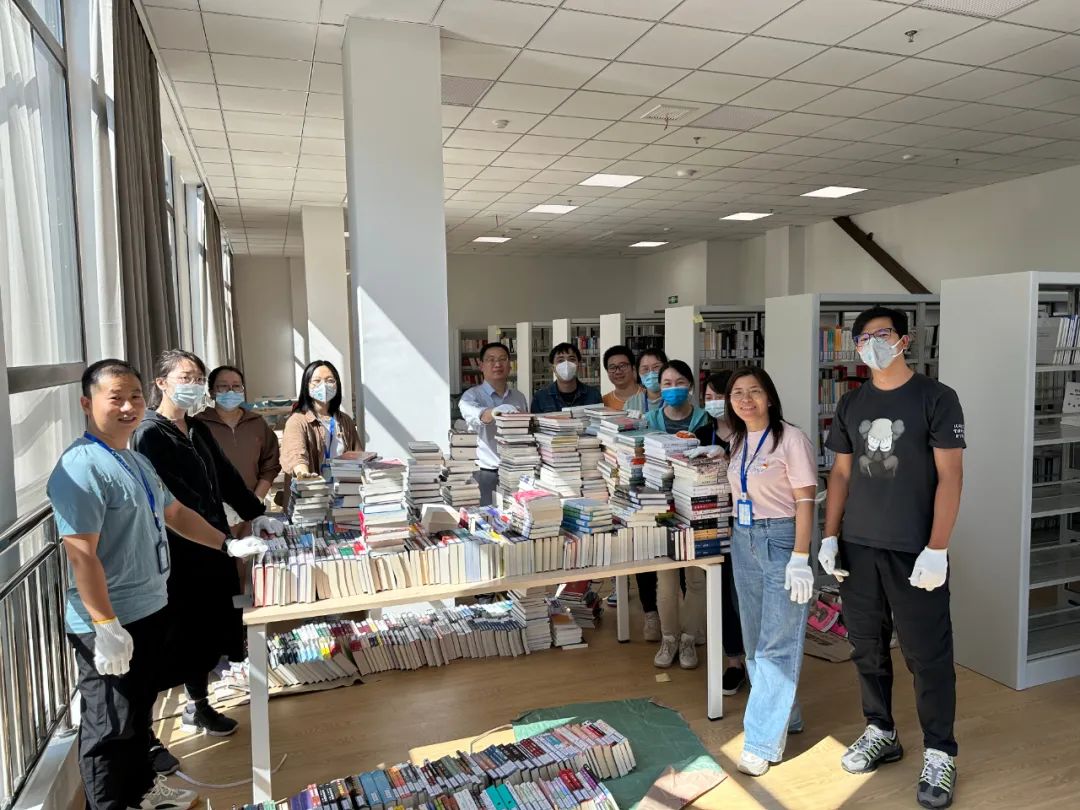 为集中力量推进图书馆金山分馆建设,机关党总支第八支部于10月24日在金山校区图书馆开展了“图书整理上架”主题党日活动。10余名党员同志带头参与图书整理,经过七个多小时的努力,成功完成了3000余册图书的排架和上架工作。
