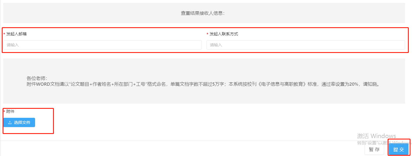 4、填写“查重结果接收人信息”并上传所需查重的文献。