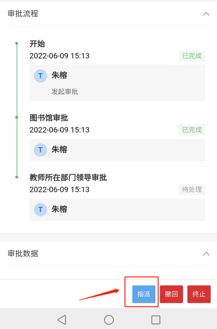 5、“提交”后进入流程审核阶段,图书馆初审后,请老师自行选择“教师所在部门领导审批”。
