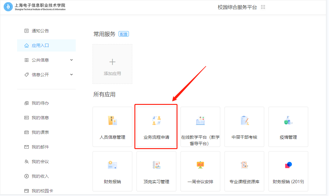 1、进入“校园综合服务平台”,点击“业务流程申请”